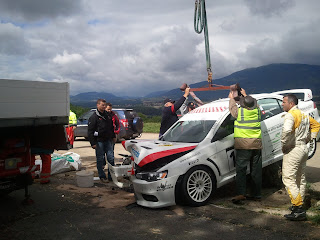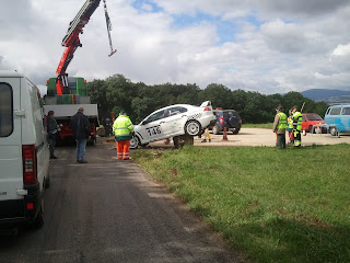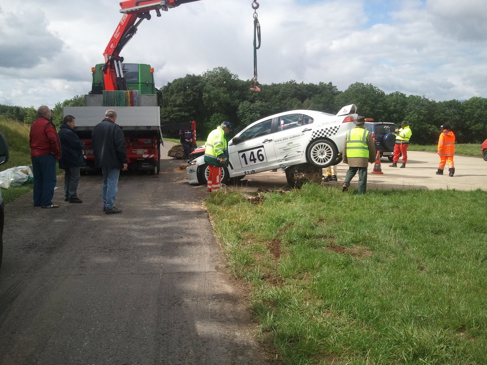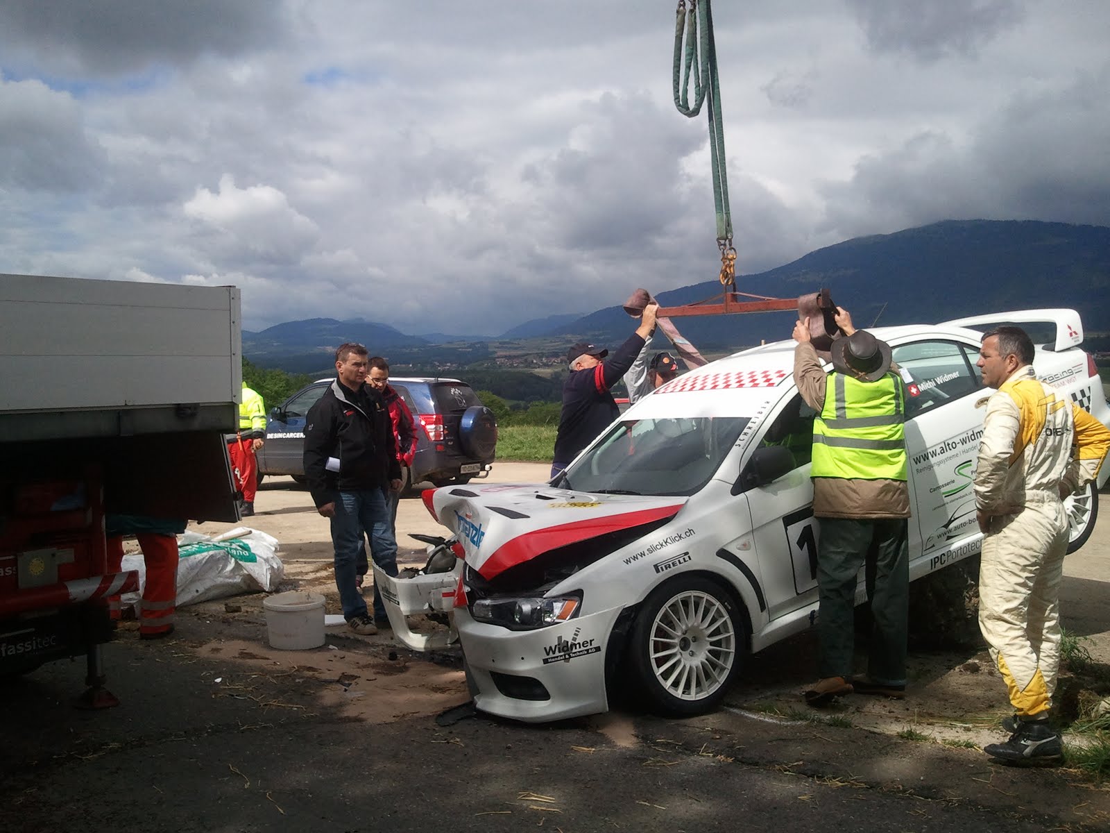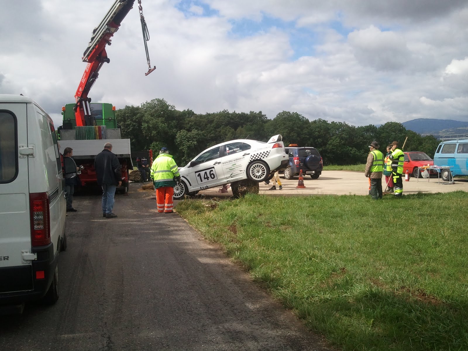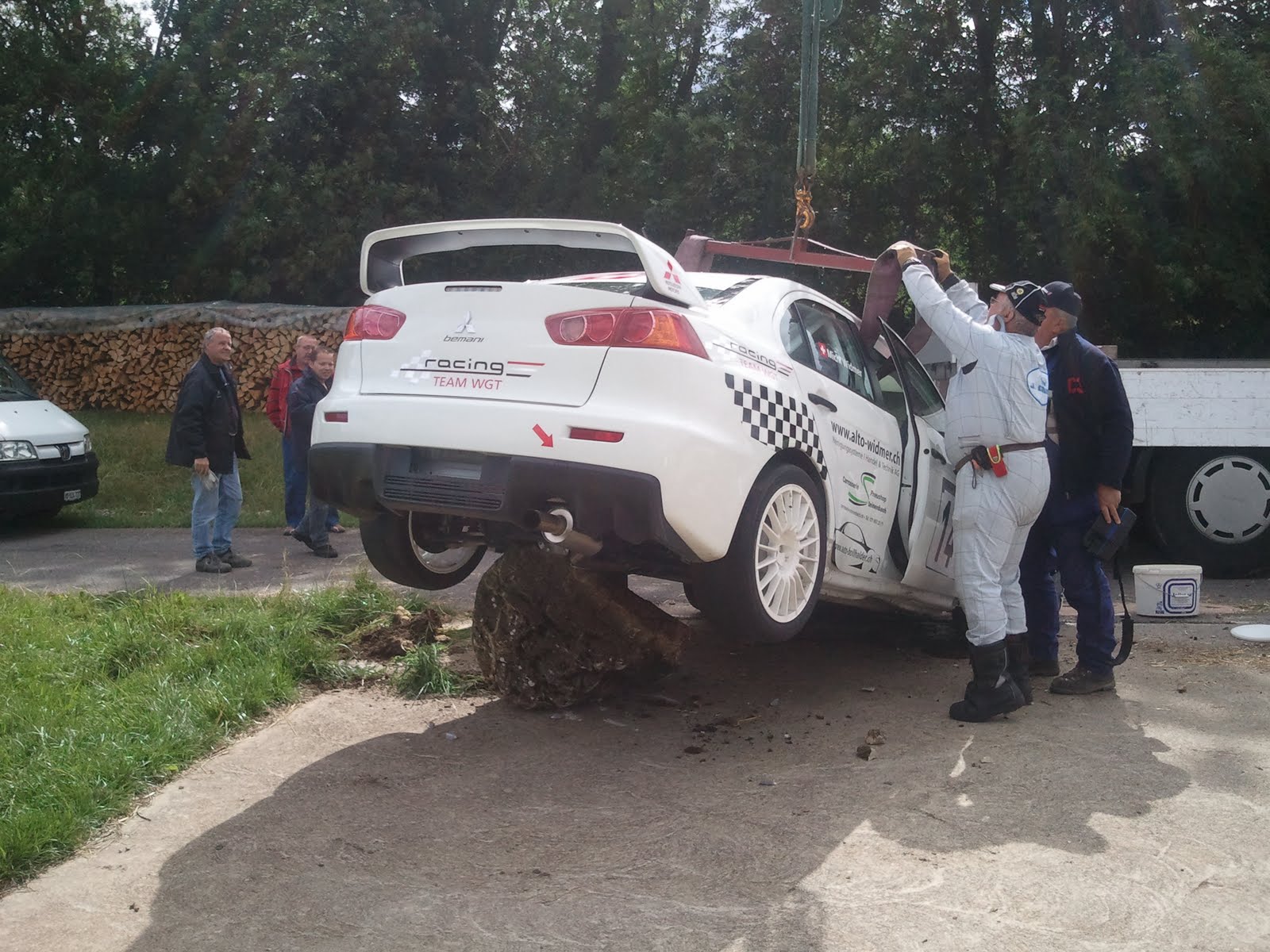 - une Mitsubishi a terminé la course sur un gros caillou au poste 3, les photos de l'intervention ci-après: